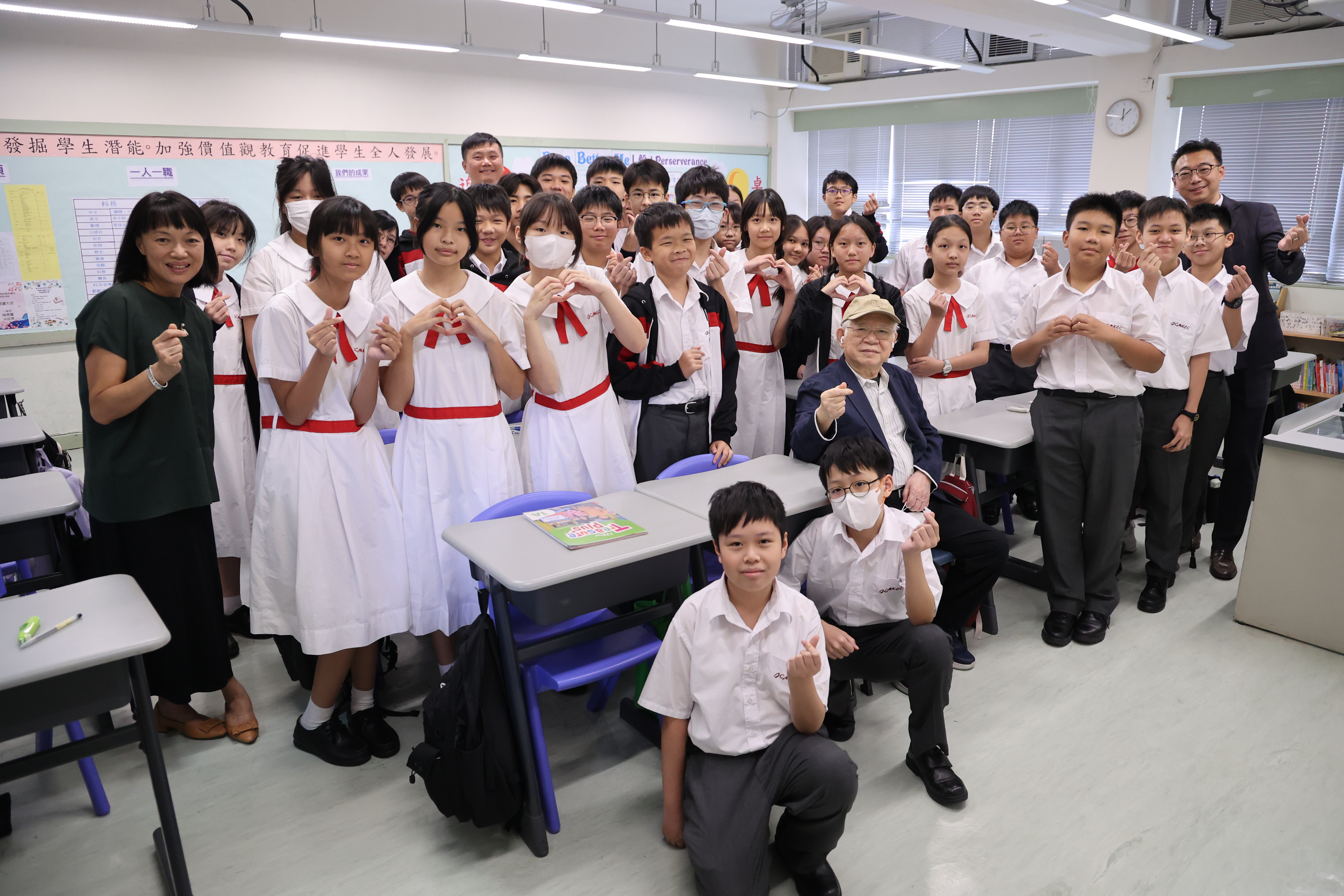 校監與中一新生合照 |